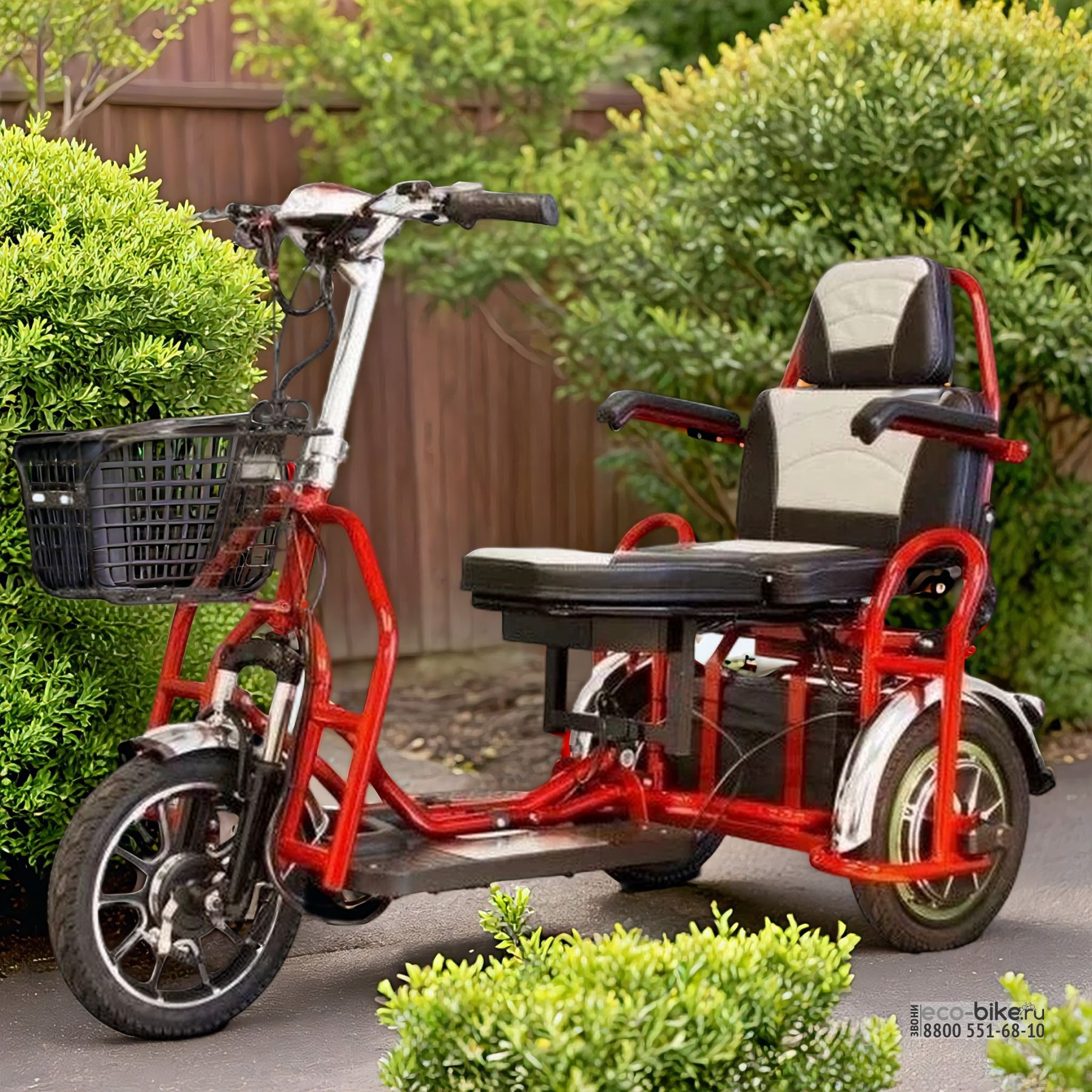 Электрические трициклы серии Адъютант - это комфортное средство передвижения для города, загорода, для людей любого возраста, а главное удобное и бюджетное средство для людей с ограниченными возможности. Модели серии Адъютант от ELBIKE имеет главное преимущество перед большинства аналогов, тем что укомплектованы литий-ионным аккумулятором весом 4,5 кг, а не свинцово-кислотной весом 18 кг, что значительно облегчает вес трицикла и дает ему ряд преимуществ: в пробеге, сроку службы. Еще одна особенность трицикла - возможность движения, как вперед, так и назад, при движении назад трицикл издает звуковой сигнал для предупреждения окружающих. У трицикла легко складывается рулевая стойка и сиденье, что позволяет его с легкостью перевозить в багажнике автомобиля. Спереди и сзади имеются вместительные корзины для перевозки необходимых предметов, а мягкое просторное сиденье с подлокотниками сделает вашу поездку максимально комфортной